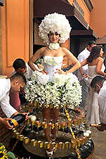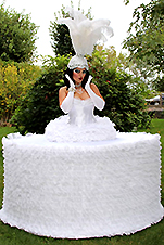 Also available STROLLING CHAMPAGNE Dress which can hold champagne, wine, shot glasses, candies, pop-corn, goodie boxes, or anything your imagination can think of. Contact us today www.AerialArtistry.com or Call for a quote 1(917)755 7744 or send us EMAIL for unique entertainment options and an impressive collection of ‘WOW Factor’ entertainment.